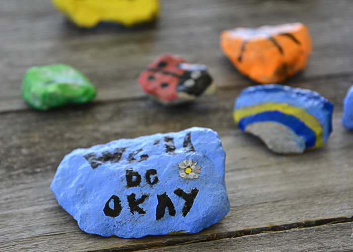 B created this one. I think the saying is perfect for what we are all feeling. We’re worried, but we will all be okay! I hope these rocks added a smile to someone’s face just like they did our’s while we were painting them!